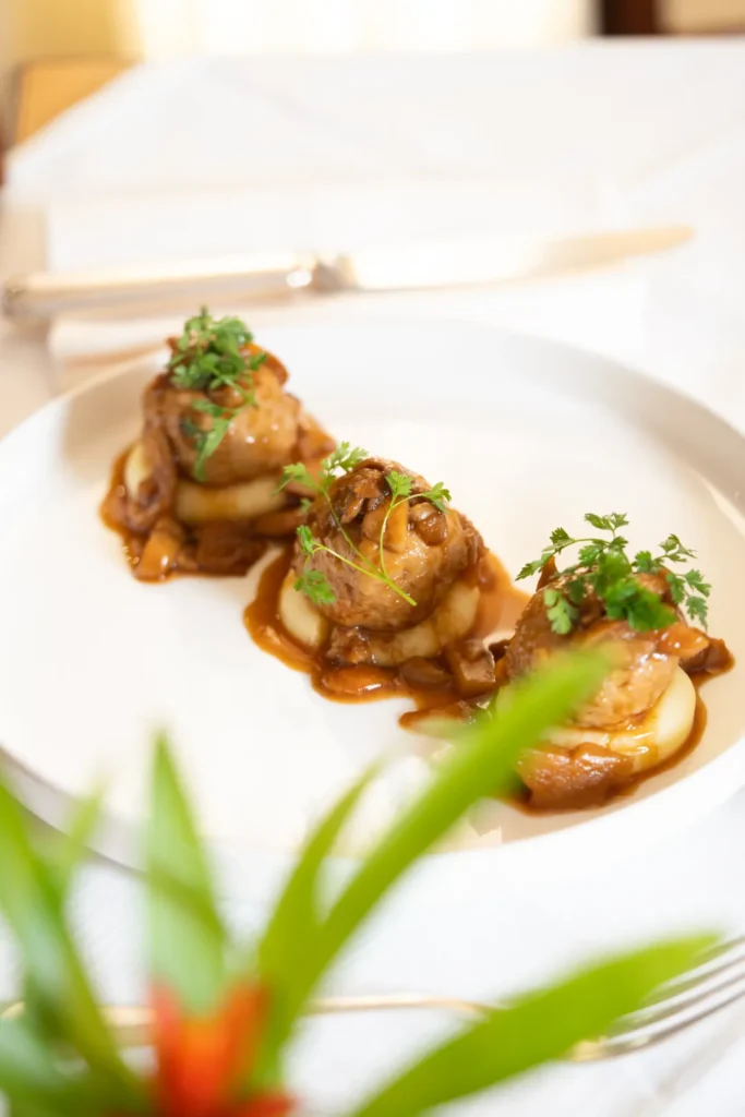 Polpette di vitello con battuta di funghi e purea di patate “km 0”